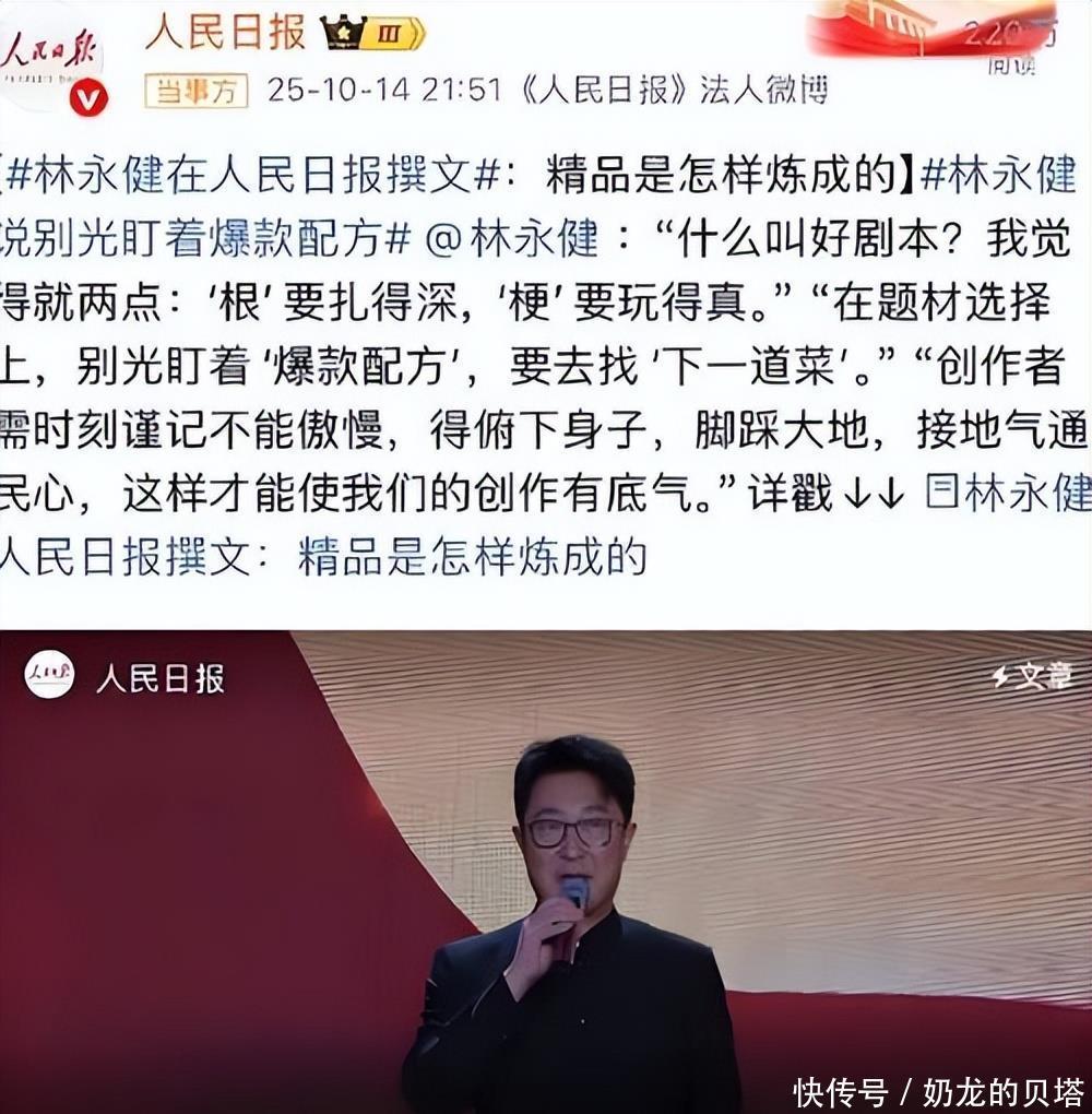 言辞犀利,一言道破行业真相,似乎要把戏混子们“公开处刑”。精品是怎样炼成的10月14日,林永健在《人民日报》上刊发了一篇以《精品是怎样炼成的》为题的文章。